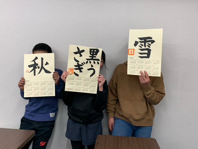 来年のカレンダーに、それぞれが好きな字を書くことでした。